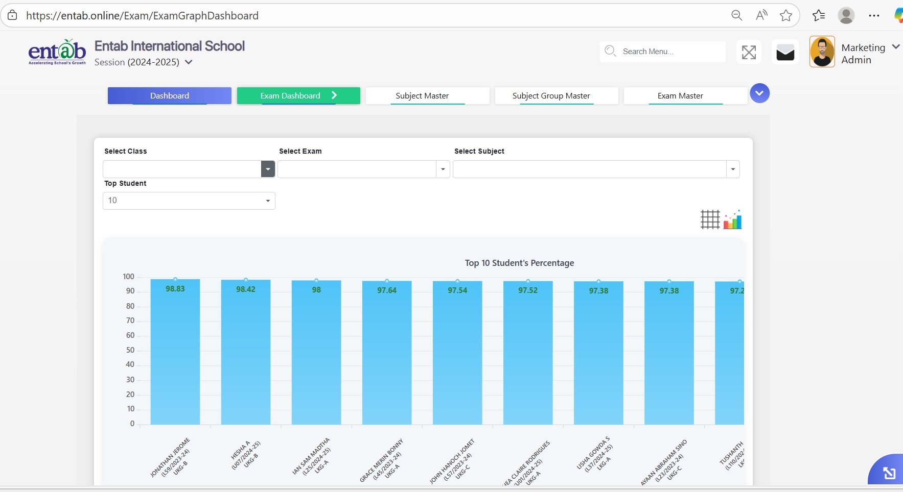 Track subject, class, and term-wise analytics in real time.