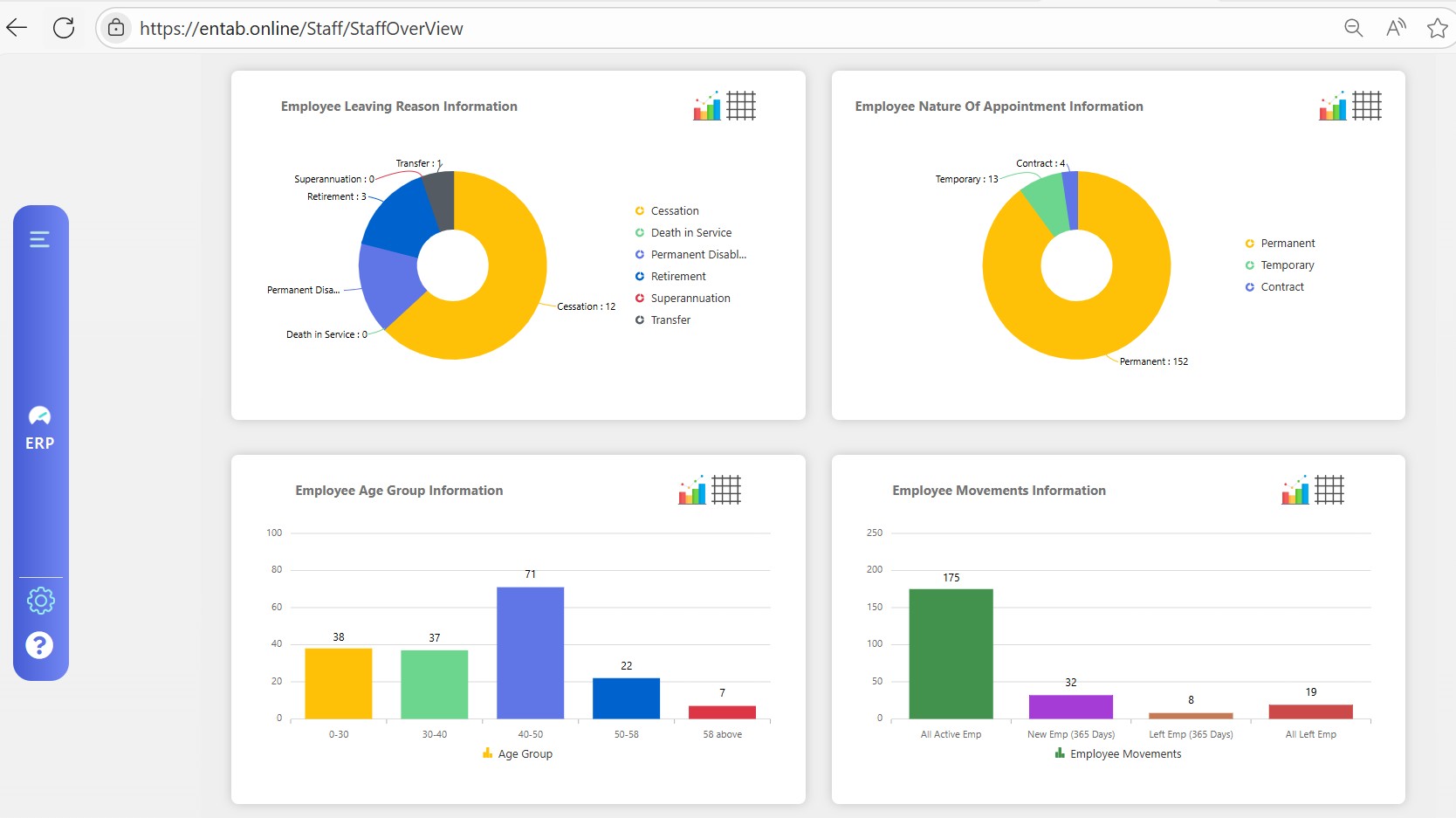 | Staff Profile & Records | Have a safe & secure database of staff: employee code, employee name, date of appointment, nature of employment. Also, the option to export / print staff profiles. |